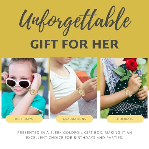 Item width: 16 millimetersClasp type: Deployment ClaspItem type name: WatchLUXURY MATERIALS: Utilizing 3D Electroforming Technology, the watch features a thick 18k real gold plating, enriching its color and providing a luxurious finishDAZZLING DIAMONDS: Adorned with VVS Clarity Prong Set Austrian Simulate Diamonds, meticulously handset to create a signature micro-pave style, ensuring brilliance and sophisticationEXQUISITE CRAFTSMANSHIP: Each product undergoes over 160 meticulous processes, including carving, high-temperature firing, and diamond setting, taking 72 hours to complete by seasoned jewelry craftsmen with over 20 years of experience. Handcrafted with precision by skilled artisans with over 15 years of experience, ensuring superior quality and attention to detailTRUSTED BRAND: With our own factory brand and a history of manufacturing for luxury brands, we prioritize quality over marketing costs, ensuring that our jewelry remains accessible without compromising on elegance or craftsmanshipTHOUGHTFUL PRESENT: Packaged in an specially designed branded Goldfoil Giftbox, our watches are the great fit present choice for kids, boys, and teens on birthdays, graduations, holidays, and other memorable occasions, ensuring a dazzling expression of love and luxuryRECOMMENDED AGE: 6 years old and up for boys or girls ideal for everyday use. finest materials and excellent craftsmanship ensure long-lasting durability.