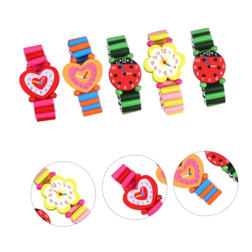More information about NOLITOY 5 Pcs Wooden Simulated Watch for Educational Playthings Cartoon Style Decorative Wooden Watches Parent Interactive Play Fun Learning Accessory Random Color