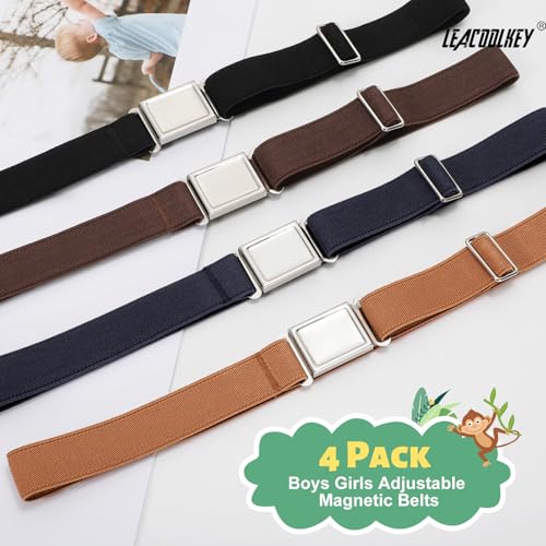 LEACOOLKEY 4 Pack Kids Magnetic Buckle Elastic Belts Boys Girls Adjustable uncomplicated Clasp Magnetic Belt