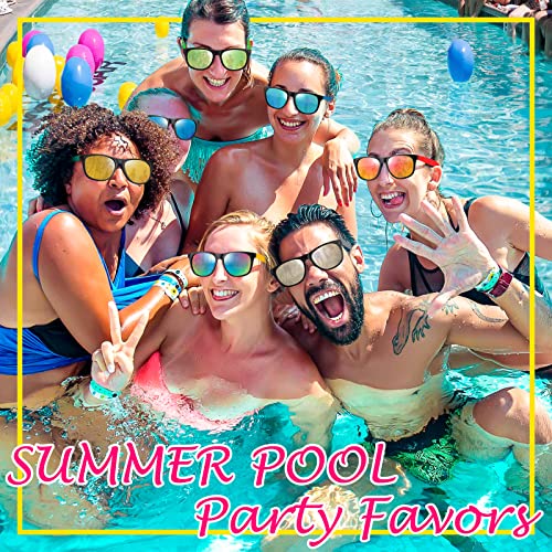 Amazing finest – Composed of plastic frame and resin lens. Frame is sturdy to withstand flexing, and sturdy hinges make the glasses be intact before you stop dancing.One Size Fits all: Size measures 5.5 inches, fits the facial structure of not only adult, but also kids over 6 years old. The glasses are lightweight that you forget you even have it.Novelty and Fashion Design - The retro design of the 80s, with 12 kinds of neon colors, will make you transform into the fashion darling of the last century. The new version have updated the reflective lens, so that others can catch the sight of the world in your eyes when you are face-to-face.Relax Your Eyes – UV400 Protection lenses greatly reduce sunlight penetration which can lighten the fatigue state of eyes, and allow you to maintain a good vision in any outdoor activities.Wear It to Anywhere You Want – Always be the focal point in summer pool party, beach party, graduation party, birth party and so on. Also a good choice as party favors, classroom prize, end of year present and goody bag fillers. Perfect for everyday use. High quality materials and excellent craftsmanship ensure long-lasting durability.