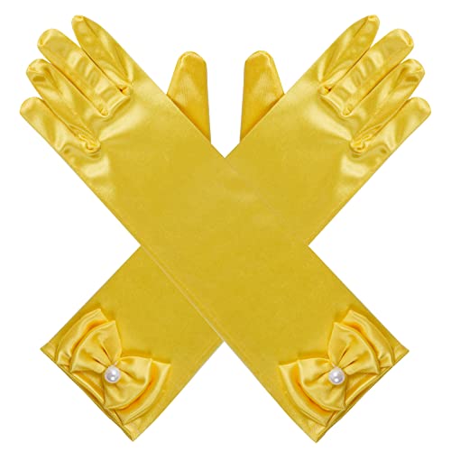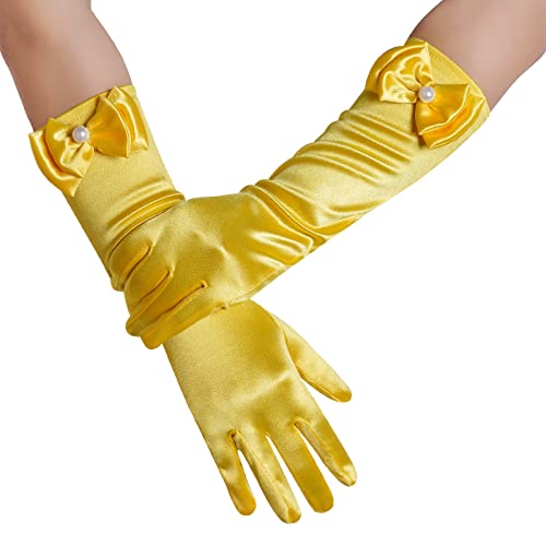 trending ! Yolyoo Girls Princess Gloves,Girl White Long Satin Princess Dress Up Diamonds Bows Gloves for Birthday,Wedding, Costume Party
