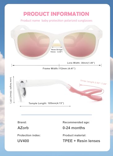 AZorb Polarized Sunglasses for Baby with Strap 100% UV Protection Shades for Toddler Age 0-24 Months