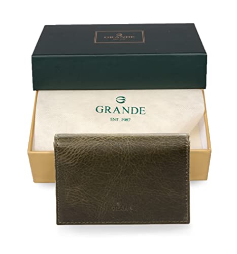 grande 3601 Genuine Leather Card Holder For Women and Men Slim Minimalist Card Case Small Magnetic Wallet (Rustic Green)