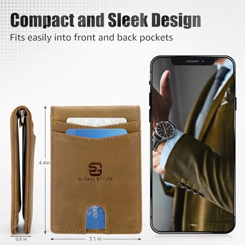 Why Choose Compact Men's Bifold Wallet - Natural Real Leather RFID Blocking Card Holder with Money Clip Wallet Sleek Vintage Style (Brown)?