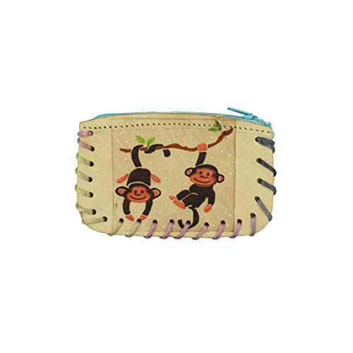 trending ! Needzo Hanging Around Monkey Kids Coin Bag, Assorted Mexican Leather Girls Change Purse with Zipper Closure, 4.5" x 3"