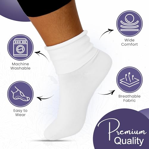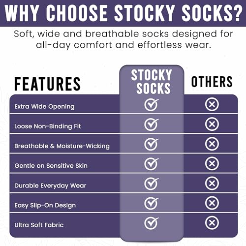 • Wide Fit Comfort: Stocky Socks extra wide, non-binding socks for women are perfect for swollen feet, wide ankles, and larger legs. Designed as smooth, loose-fitting quarter crew socks for women, they offer breathable, moisture-wicking feel to keep you dry and irritation-free. Ideal plus size and cozy or slouchy socks for women, these relaxed fit soft socks for women are cozy and extended size. making them the go-to socks for swollen ankles, wide feet, sensitive skin.