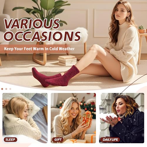 Womens Fuzzy Socks toasty Fluffy Winter Cozy Thick Plush Microfiber Slipper gentle Home Sleeping Socks 5 Pairs