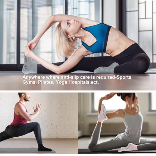 • MULTI USAGE:One Size fits Women’s shoe size 5.5-10.These adult grippy socks are deal for women and men outstanding for yoga, pilates, barre, ballet,dance,barefoot,workout,fitness,exercise,bikram,studio,trampoline,gym and more!Also ideal for hospital socks, physiotherapy, elderly care,rehab,pregnancy and more to prevent falls from stairs , or the floor.