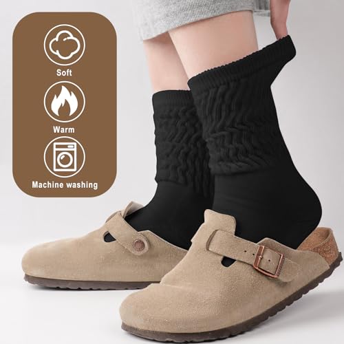 trending ! Mid-Calf Slouch Socks Women - Retro Scrunch Socks - velvety Solid Calf Socks Size 5-11