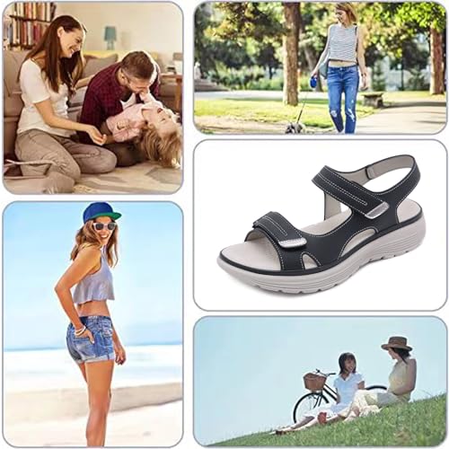 Women's Leather Platform Casual Orthopedic Sandals Fashion relaxing Hook Loop Non Slip Outdoor Wedge Walking Sandals for Mam Work Outdoor
