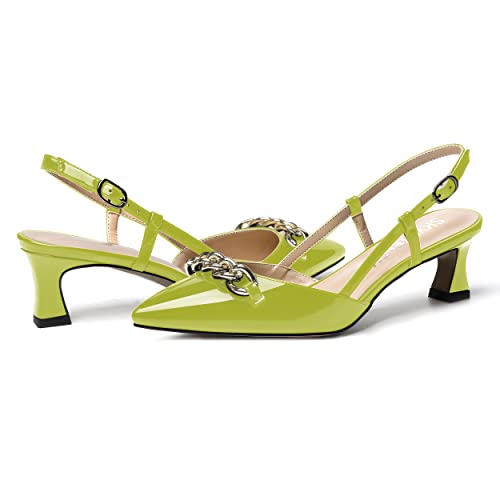 trending ! SKYSTERRY Women's Casual Metal Slip On Pointed Toe Patent Slingback Dating Spool Low Heel Pumps Shoes 2 Inch