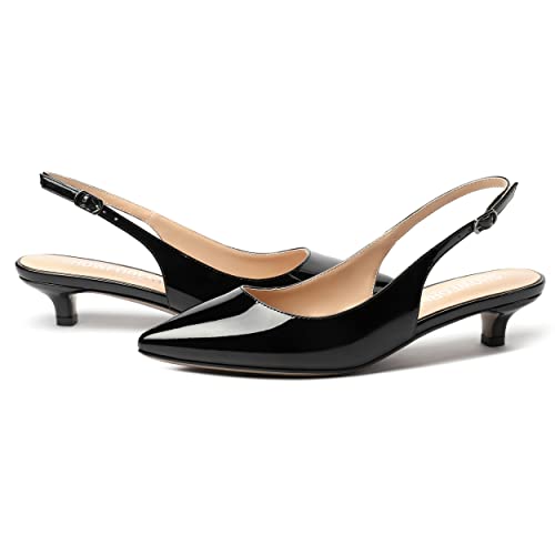 Why Choose SHOWFOREST Women's Slingback Pointed Toe Wedding Dress Patent Buckle Kitten Low Heel Pumps Office Work Dress Shoes 1.5 Inch?
