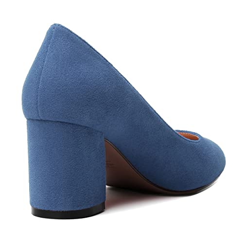 SKYSTERRY Womens Cute Round Toe Slip On Suede Wedding Block Mid Heel Pumps Shoes 2.5 Inch