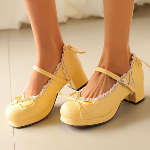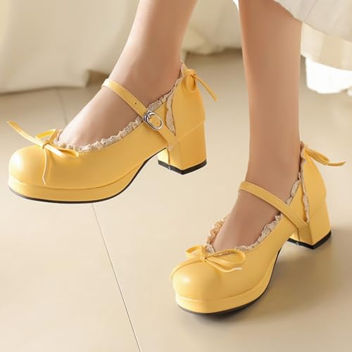 Women's Sweet Cute Bow Platform Lolita Mary Jane Pumps Round Toe Low Block Chunky Heels Ankle Strap Buckle Prom Party Princess Dress Shoes