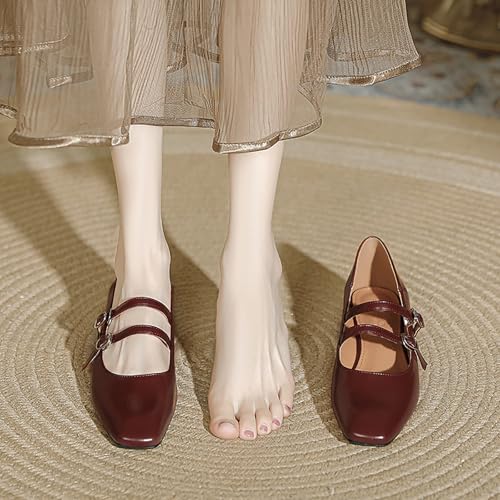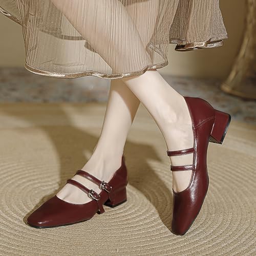 More information about Women's Leather Two Straps Block Heels Mary Jane Shoes Comfort Square Toe Low Heels Pumps Adjustable Buckle Office Work Dressy Shoes