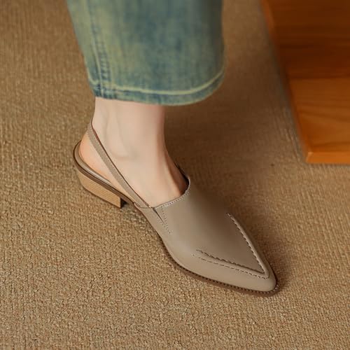 Women's Genuine Leather Slingback Block Heel Pumps with Buckle Ankle Strap Closed Pointed Toe Slip-On Stacked Chunky Heels Mules Sandals Fashion Dress Party Prom Shoes