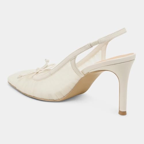 XYD Women Bow Pointed Toe Slingback Pumps Elegant Gauze Mesh High Heels Evening Party Shoes