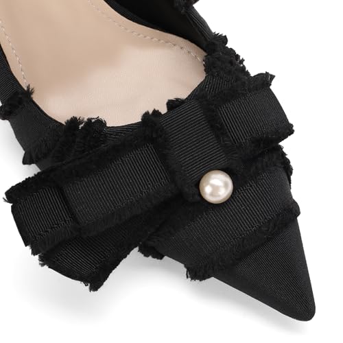 Women's Pointed Toe Slingback Heels with Bow Pearl, 3.15" Kitten Heels Slip on Stiletto Pumps with Buckled Straps for Designer Dress Shoes