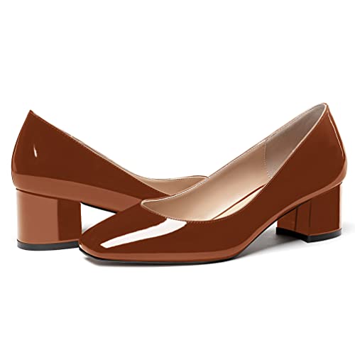 trending ! WAYDERNS Women's Slip On Square Toe Block Patent Chunky Low Heel Pumps Shoes 2 Inch