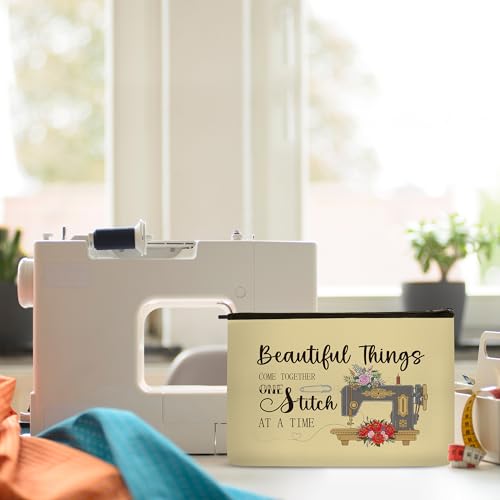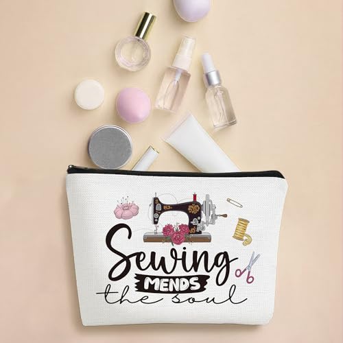 SEAOYOZO Sewing Makeup Bag Gifts, Funny Quilting Sewing Gifts for Seamstress Women Sewing Lovers, Sewing Supplies Quilter Gifts Cosmetic Bag, Sew Machine Themed Gift for Mom Grandma Aunt