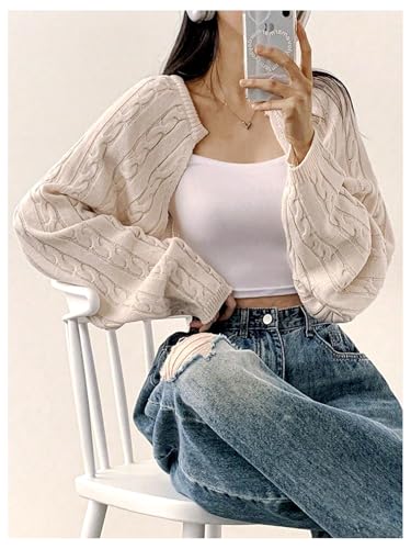 trending ! OYOANGLE Women's Cable Knit Open Front Bolero Shrugs Long Sleeve Lightweight Cropped Cardigan Sweaters