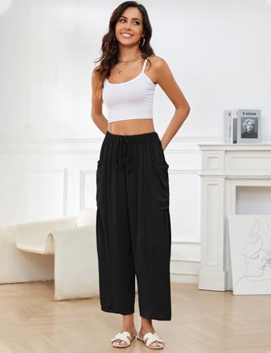 Flygo Women's Wide Leg Pants Summer Casual Loose Fit Beach Palazzo Harem Pants with Pockets