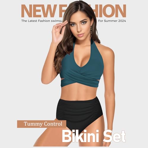 Why Choose Women's High Waist Bikini Set Tummy Control Ruched Swimsuit Cross Back Lace Up Halter Two Piece Swimwear?
