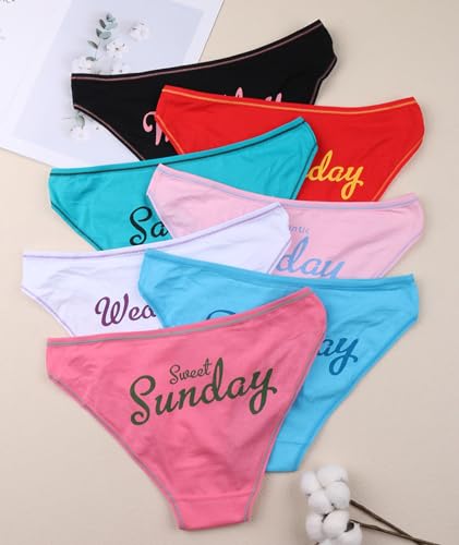 Women Full Coverage Stretchy Underwear Week Days Printed Briefs 7 Pack