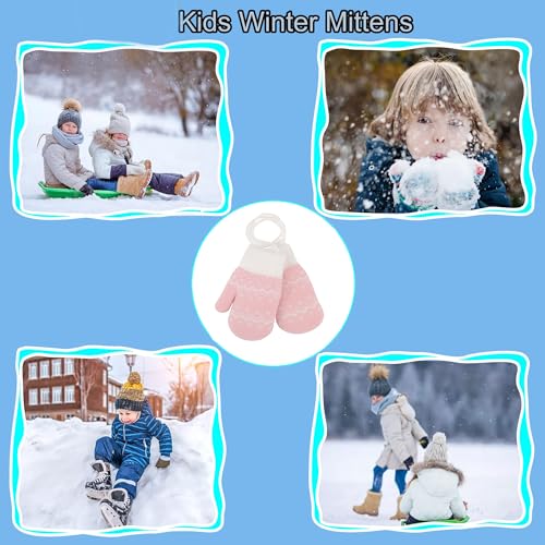 Kids-heated-Knit Mittens - Girls-Winter Outdoor-Thickened Cold-Weather Wool Toddlers Ski Gloves For 3-5 Years