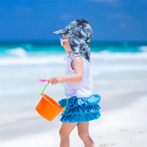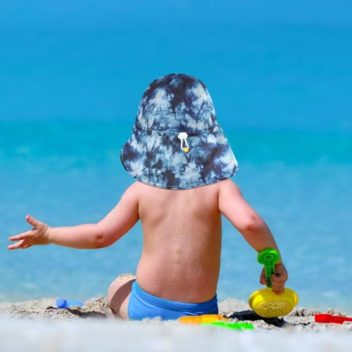 trending ! Baby Sun Hat Blue Tie Dye Pattern Toddler Kids Beach Hat Neck Flap Cap Sun Protection Girls Boys Summer Hat Swim Bucket Hat for Travel Hiking Outdoor