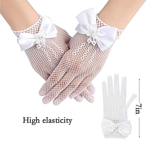 • 【Package contents】: 1 piece of white bowknot rhinestone veil, 1 pair of holy white mesh gloves, 1 piece of female face covering,1 piece faux pearl rhinestone necklace, this is a good combination, you can wear them alone or together to turn any girl into a princess , highlighting charm and elegance of the girl.