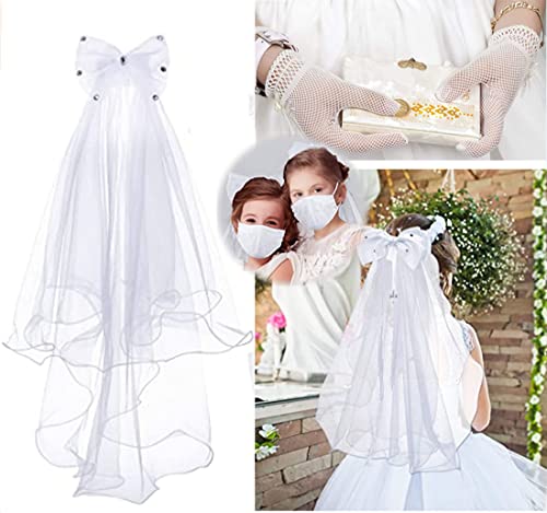 trending ! 4 Pieces Girls First Communion Veils Set 1st Communion Holy Veil Headpiece Gloves & Necklace and Communion Face Covering for Wedding Flower Girl Veil Kids Party Wedding Formal Pageant