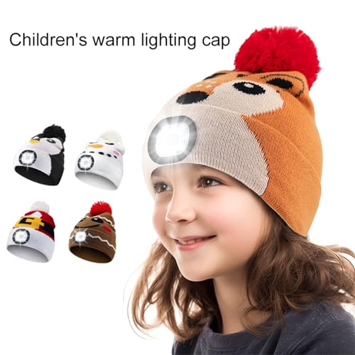 Kids Boys Girls Winter cozy Beanie Hat with Waterproof Light LED USB Rechargeable Funny Headlight Knit Hat
