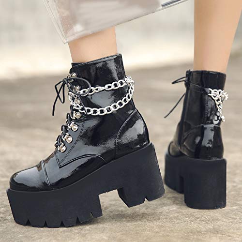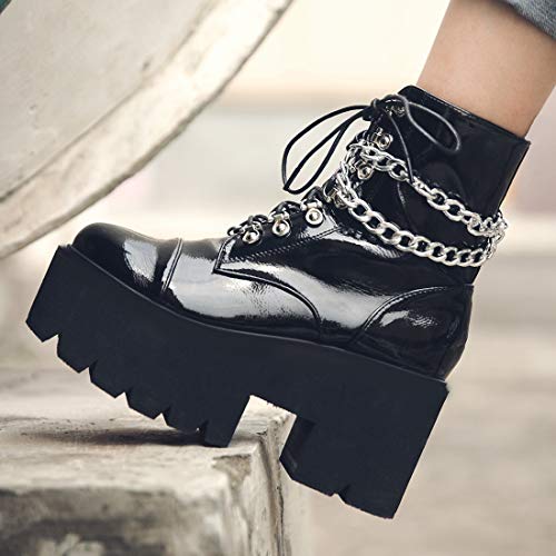 AIMODOR Womens Chain Goth Platform Combat Ankle Boots Chunky High Heel Booties