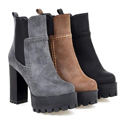 MIOKE Women's Platform High Heeled Ankle Booties Round Toe Chelsea Waterproof Elastic Dressy Short Boots
