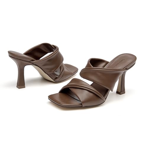 SelenePair Women's Square Open Toe High Heeled Sandals Fashion Stiletto Heel Pumps Backless Peep Toe Slip-on Dress Shoes