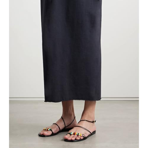 trending ! Women's Beaded Flat Sandals Strappy Open Toe Slides Sandals For WomenAnkle Buckle Summer Beach Dress Shoes