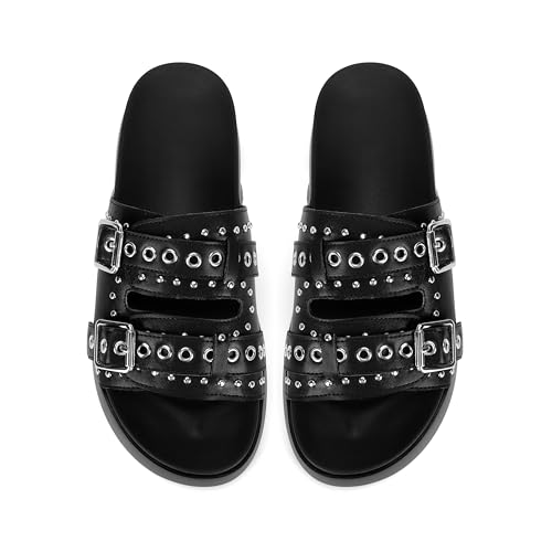 Why Choose Womens Flat Slide Sandals Double Strap Adjustable Buckle Slip on Slides Shoes Stud Flatform Sandals?