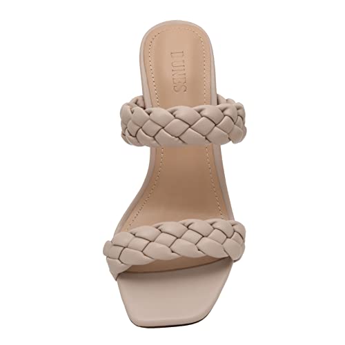 Dunes Iris Chunky Braided Heel Sandals for Women, Block Heel Square Toe Summer Sandals with Memory Foam