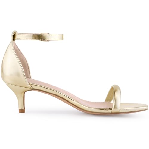 - [ FEATURES ]: Square Toe, Kitten Heel, Ankle Strap Sandals, Buckle Closure, Metallic Sandal