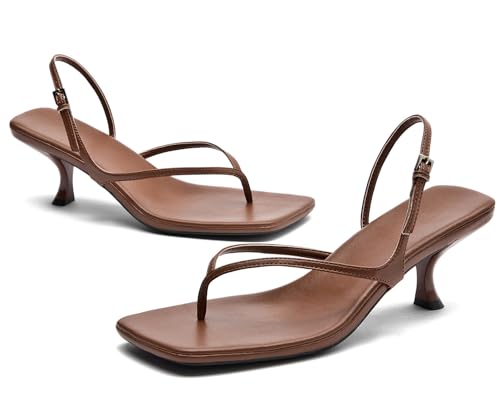 Fabric type: Synthetic LeatherSole material: RubberOuter material: Faux LeatherClosure type: Buckle【Dressy Kitten Heel Sandals】: Characterizing stylish small kitten heels, the Flip Flop type gives height to your figure and lengthen your leg curve to make you look slim and elegant. Fashion square open-toe style provides fitable feet space. Make yourself feel confident with every step!【Comfort for All-day Walk】: These summer kitten sandals with unique soft anti-sweat lining, padded insole and slip-resistant rubber out-sole let you wear or dance all day NO PAIN. respectable shoes will absolutely become your wardrobe staple with dresses and jeans for your casual or office wear.【Perfect Kitten Heels For Women】: Heel measures 2.36 inches (Approx). Keep the elegant look with more comfortable and sure design, which can also make your every step more stable and secure under the kitten heels. These heels feature an ideal kitten heel height that ensures stability and ease while walking.【Effortless Buckle Design】: Shine bright on special occasions (Silver, Nude, Black, Gold, Brown Colors)! Strap with metal buckle closure can be adjusted easy to the right position, every dress experience will be perfect as your wish.【Ideal for Every Occasions】: These Flip Flop heels effortlessly complement a variety of outfits and occasions. These summer sandals perfect for the beach, garden, shopping, office, house, and all daily and casual wear. Perfect for everyday use. finest materials and excellent craftsmanship ensure long-lasting durability.