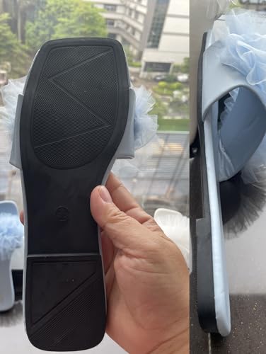 More information about OYOANGLE Women's Square Open Toe Slide Sandals Sheer Ruffle Dressy Slip on Flat Sandal