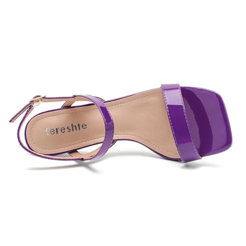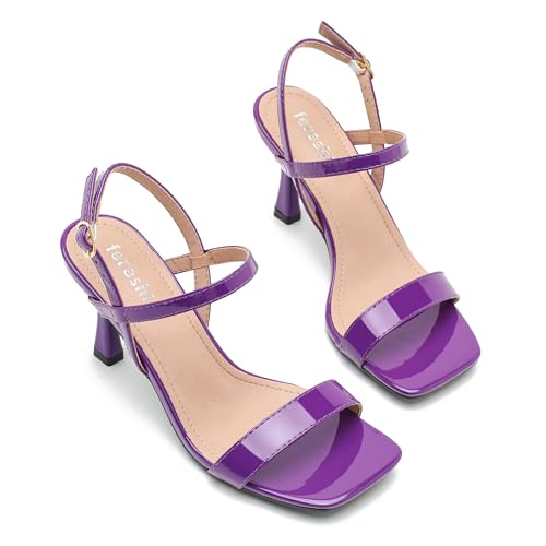 fereshte Womens Strappy Kitten Heels Open Square Toe Sandals Ankle Strap Buckle Slingback 3" Summer Dress Shoes