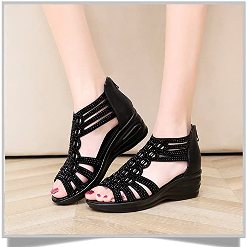 Women's Roman Wedge Hollow Sandals with Zipper Back,Rhinestone Gladiator Open Toe High Heel Dress Sandals Bootie