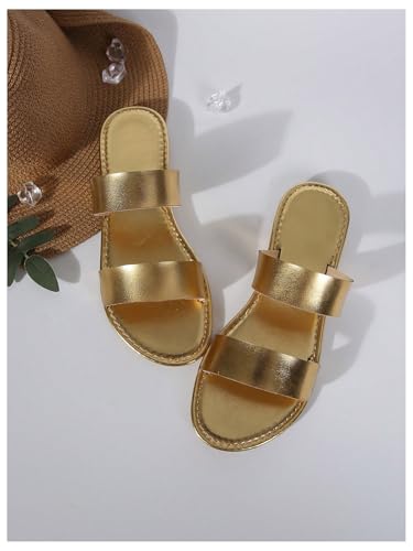 trending ! GORGLITTER Women's Metallic Flat Sandals Open Toe Double Strap Slide Sandals