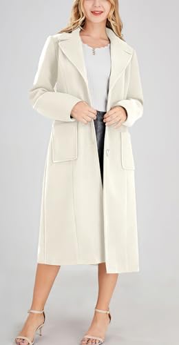 ebossy Women's Elegant Notched Lapel Overcoat Single Breasted Button Mid Long Wool Blend Pea Coat