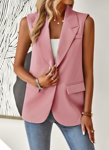 trending ! Sleeveless Blazer Vest for Women,Womens Casual Open Fornt Button Down Slim Business Jacket Waistcoat with Pocket