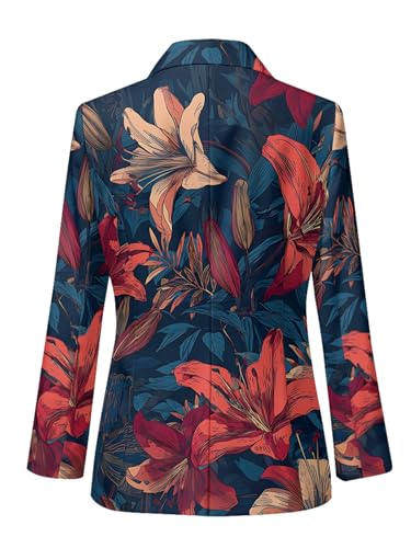 trending ! Women's Floral Printed Blazer Lightweight Fall Long Sleeve Lapel Single Button Suit Jackets