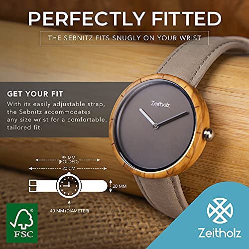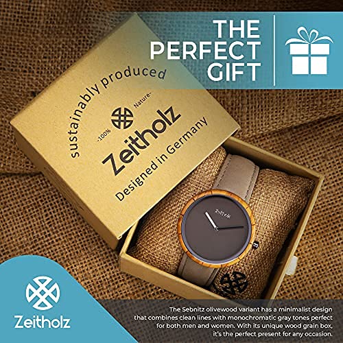 Zeitholz Unisex Wooden Watch - Sebnitz Model, Handmade from 100% Natural Olivewood with Quartz Movement - Lightweight Analog Wooden Watch for Men and Women - Adjustable Band Fits Any Wrist