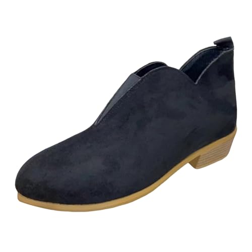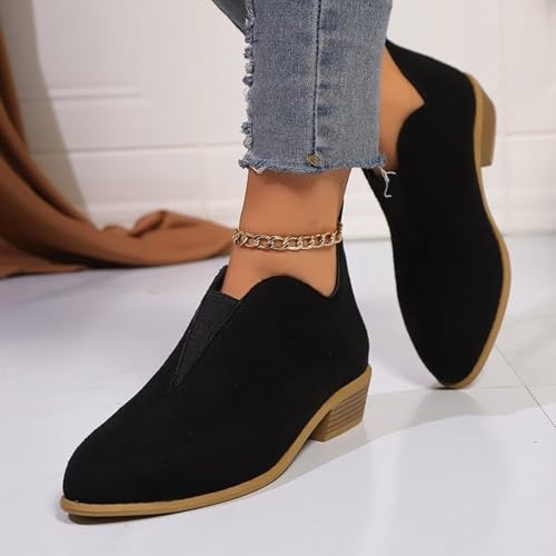 Womens Ankle Boots V Cut Out Pointed Toe Chunky Stacked Heel Dressy vintage Booties Women's Casual Work soft Dress Low Heels Short Boots Fashion Pull On Ankle Booties for Women